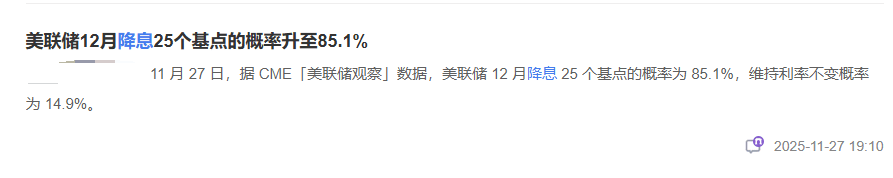 Gerade wichtige Nachrichten: Die Wahrscheinlichkeit einer Zinssenkung durch die Federal Reserve im Dezember ist auf 85,1% gestiegen! Das ist ein super Signal für den globalen Kapitalfluss in riskante Anlagen! Historische Erfahrungen zeigen, dass Bitcoin und Ethereum oft zuerst stark ansteigen, wenn Zinssenkungen erwartet werden! Besonders Ethereum hat in letzter Zeit bei niedrigem Niveau ein starkes Volumen gezeigt, was darauf hindeutet, dass große Investoren frühzeitig Positionen aufbauen. Die Nachrichtenlage und technische Analysen schaffen eine Resonanz, und die explosive Kraft in der Zukunft könnte unvorstellbar sein!