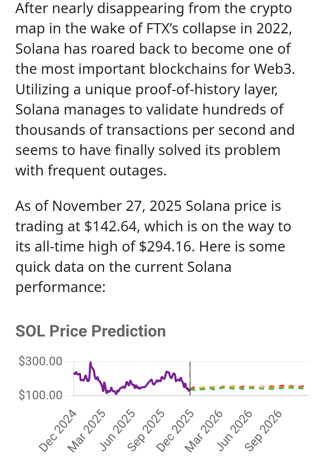 in DeFi und NFT-Adoption, mit überlegener Geschwindigkeit (65.000 TPS) und niedrigen Gebühren (~0,00025 $ pro Transaktion). Der aktuelle Preis liegt bei etwa 140 $, aber Prognosen deuten auf 150–160 $ bis zum Monatsende hin (eine Steigerung von 9–15 %), wobei optimistische Szenarien 250–280 $ erreichen, wenn das Wachstum des Ökosystems beschleunigt. Experten wie die von Investing Haven schätzen die Höchststände für 2025 auf durchschnittlich 425 $, angetrieben von Staking-Erträgen (6–8 %) und realer Nutzbarkeit in Zahlungen/Spielen.