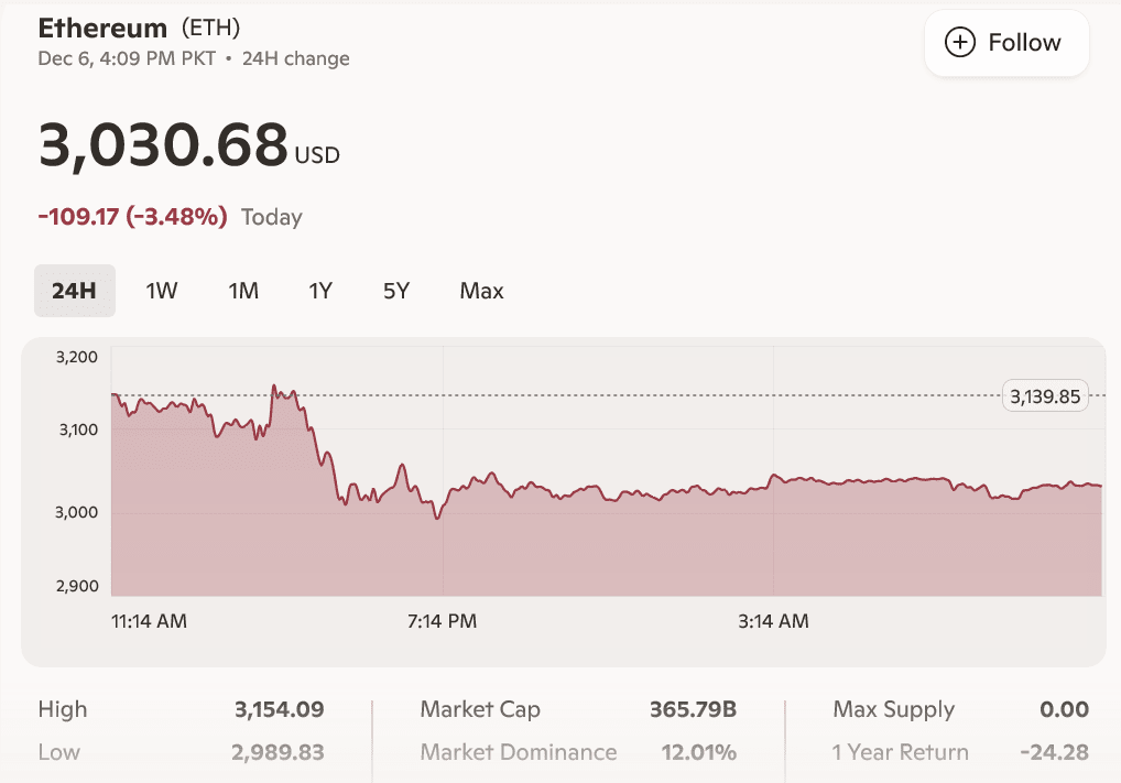 BTC76,538.3-1.78%Ethereum ($ETH ): Handel bei 3.030,68 US-Dollar, ein Rückgang von 3,47 % gegenüber 3.139,85 US-Dollar.