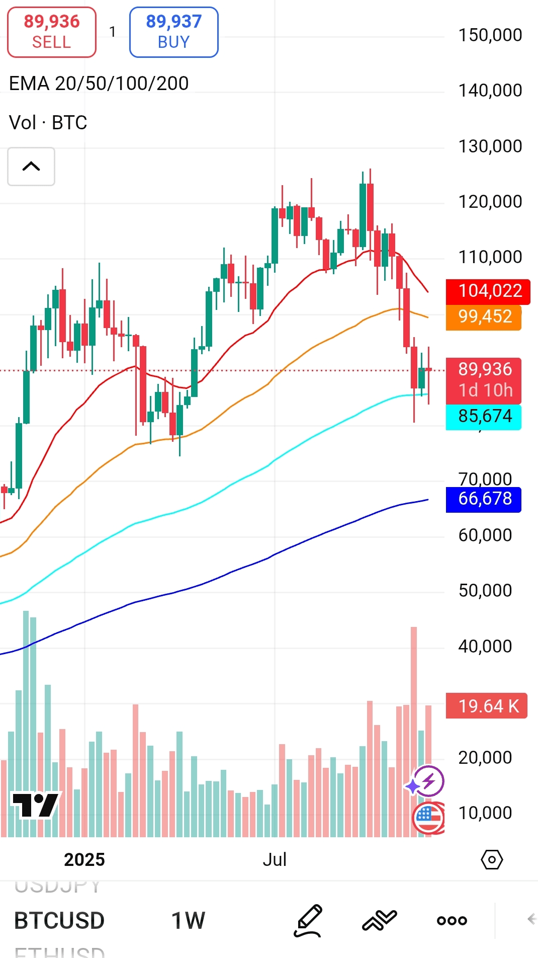 Das wöchentliche Chart von Bitcoin (BTC/USD), das sich von Anfang 2025 bis Juli erstreckt, deutet auf eine signifikante Verschiebung der Marktdominanz von Käufern zu Verkäufern hin. Nach einer beeindruckenden Rallye und einer Konsolidierung im Bereich von 100.000 bis 120.000 US-Dollar hat sich $BTC hin in eine scharfe Korrekturphase begeben und kritische Unterstützungsniveaus durchbrochen.