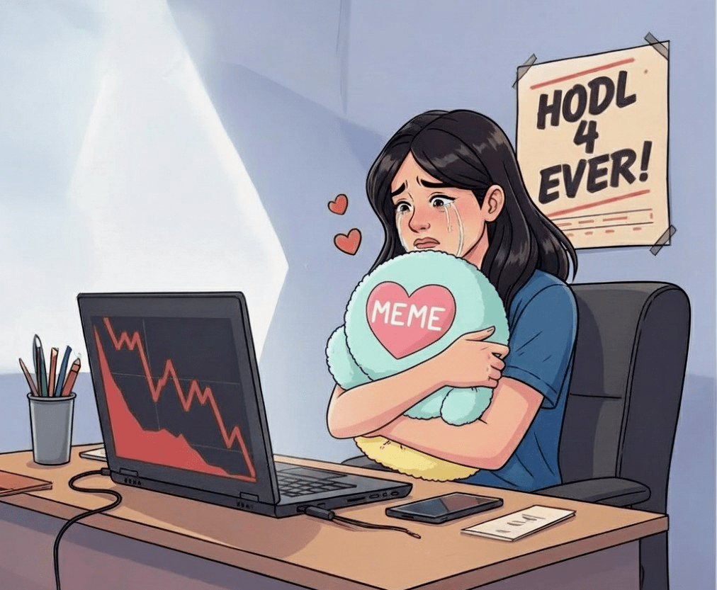 ▪️Wenn Sie investieren, ist es leicht, sich an ein Stück (z. B. ein Memecoin) zu binden.