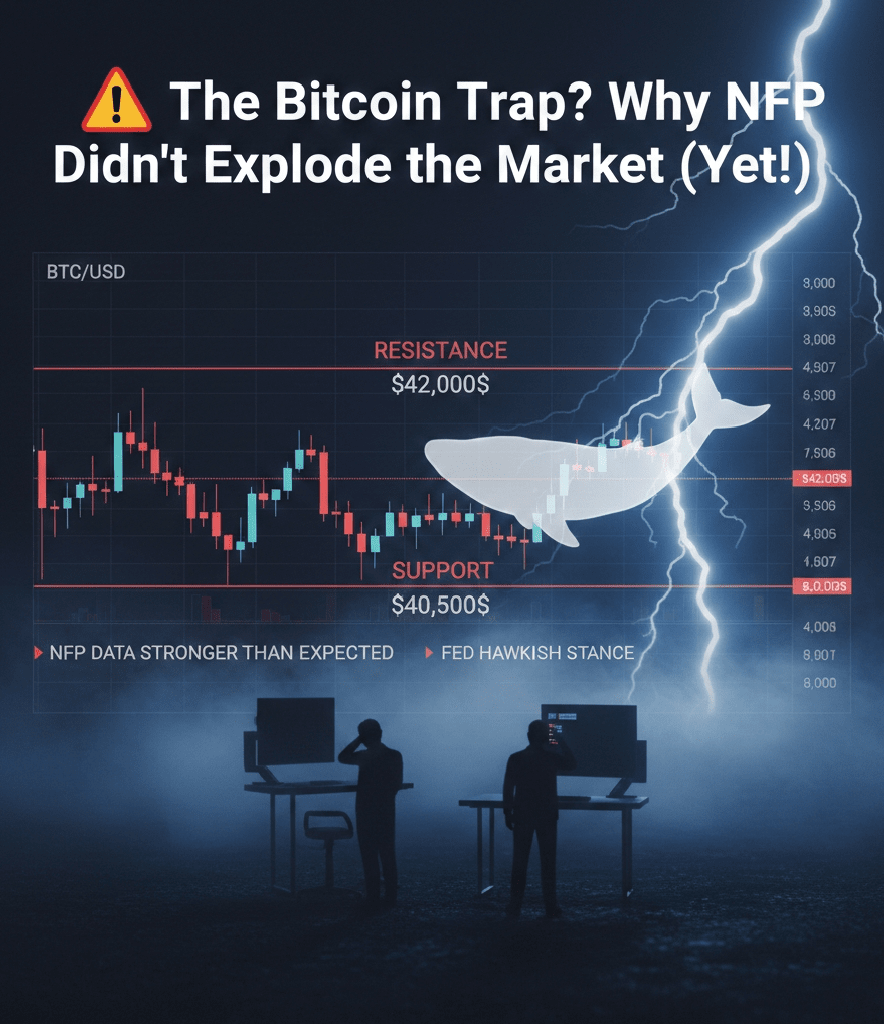 Die Krypto-Welt hielt den Atem an für die US} Non-Farm Payrolls ($NFP ) Daten heute. Die Zahlen kamen stärker als erwartet (210 {K} vs 175 K}), aber anstatt eines massiven Absturzes oder einer Mondmission, $BTC handelt in einem langweiligen Bereich. Ist dies ein Zeichen der Stärke, oder wird eine massive Falle für Einzelhändler aufgestellt?