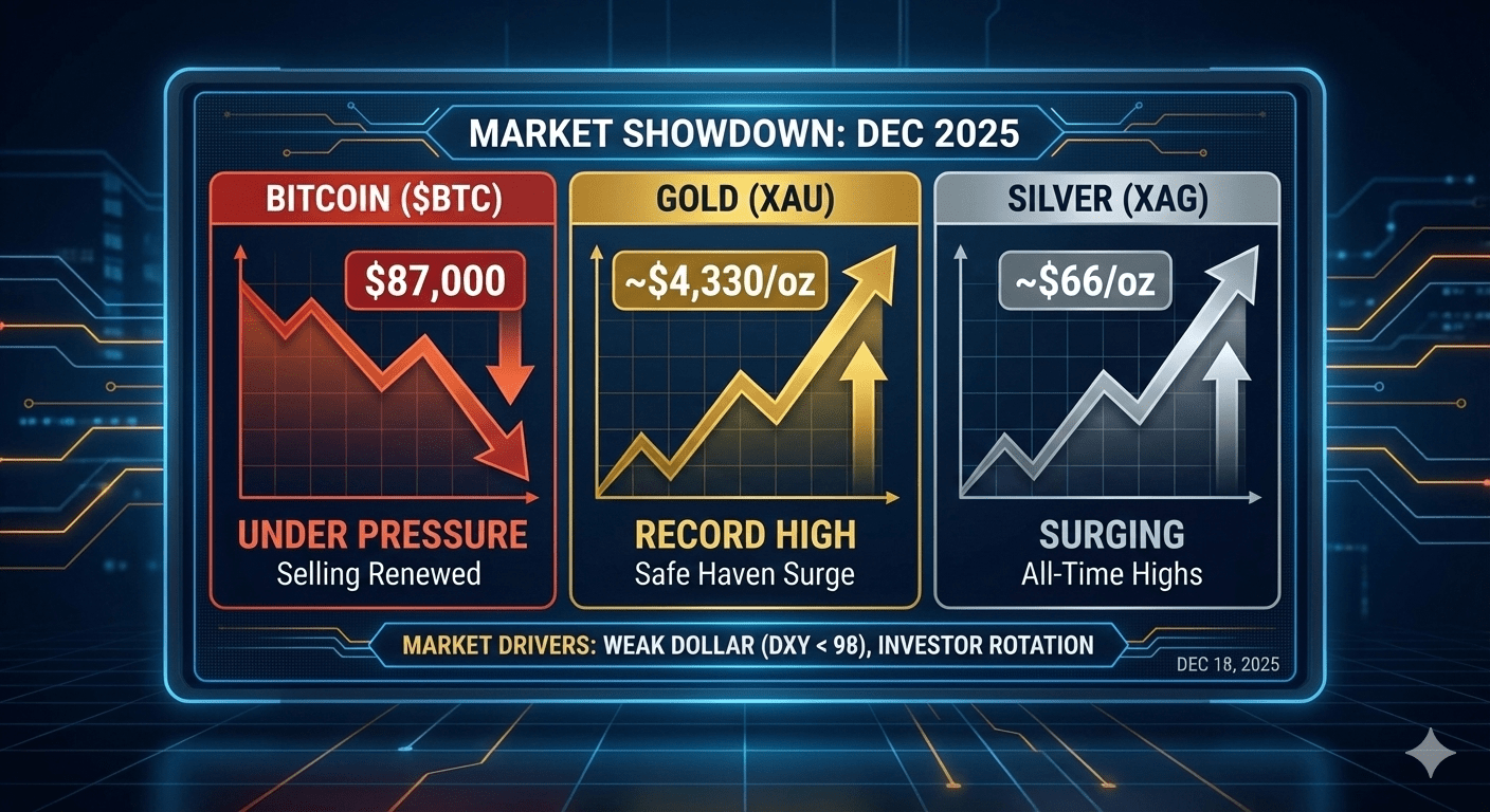 Ab dem 17. Dezember 2025 erhitzt sich die Debatte über den "Wertaufbewahrungsmittel". Während Bitcoin ($BTC BTC) Verkaufsdruck um die 87.000 $-Marke ausgesetzt ist, steigen Gold und Silber auf beispiellose Höhen. 📈