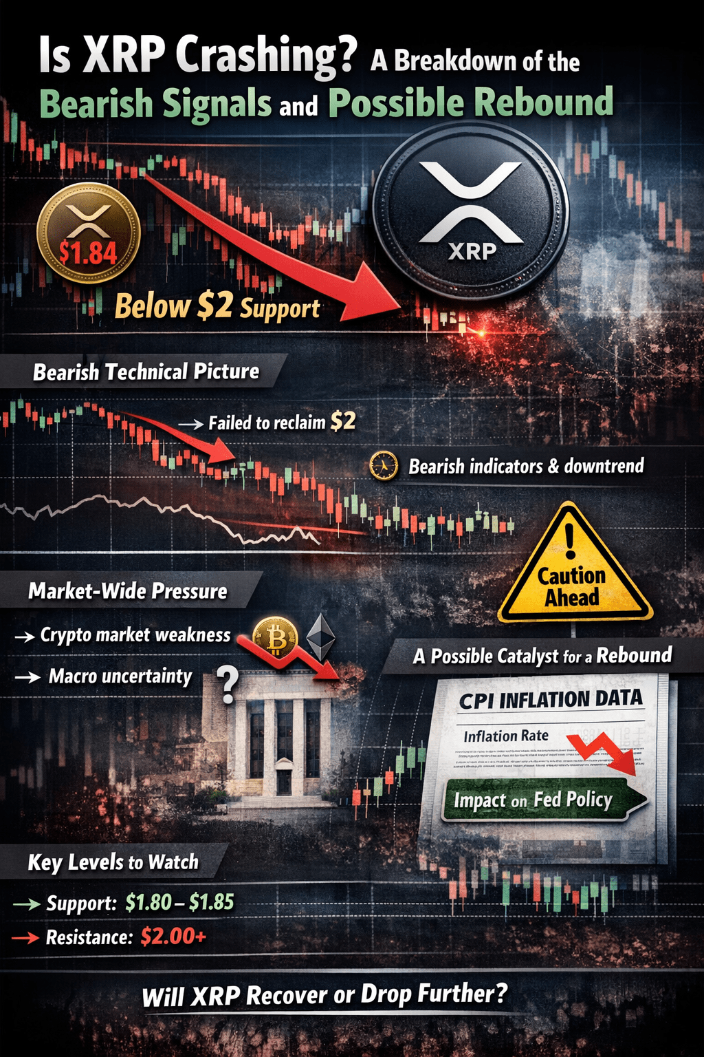 #XRP’ , der #cryptocurrency in Verbindung mit Ripple steht, sieht sich derzeit einem starken Verkaufsdruck ausgesetzt, nachdem er die kritische Unterstützungsebene von 2 $ verloren hat. Dieser anhaltende Bruch unter eine psychologisch wichtige Preiszone hat bei Händlern und Analysten Besorgnis ausgelöst, ob XRP auf eine tiefere Korrektur zusteuert.