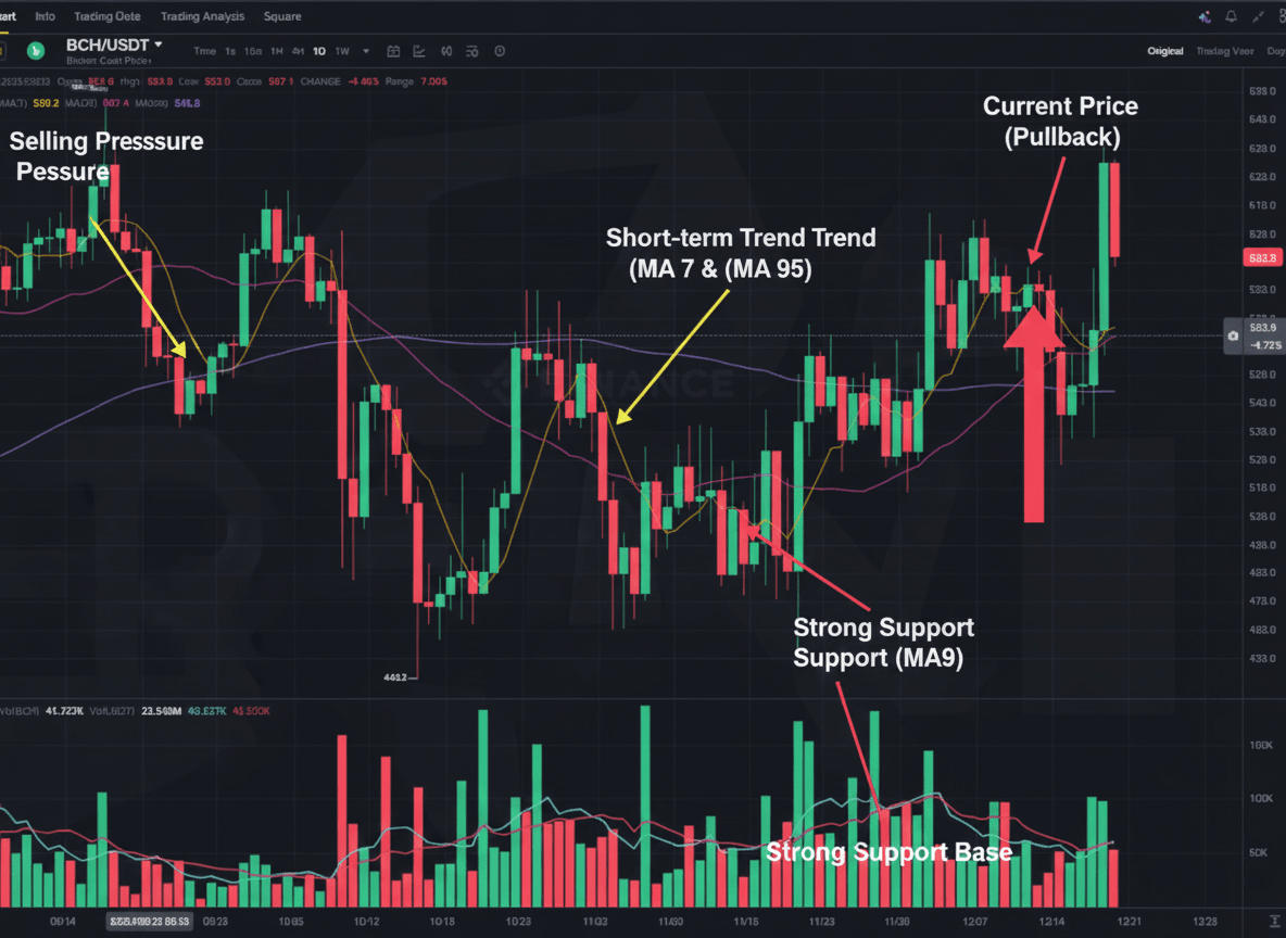 Die unmittelbare Unterstützungszone ist entscheidend. Wenn BCH über $560 bleiben kann, bleibt die bullische Struktur intakt. Ein Durchbruch unter diese Zone würde Druck auf Käufer ausüben und könnte zu einer tieferen Korrektur in Richtung der wichtigen Unterstützung um $443 führen.