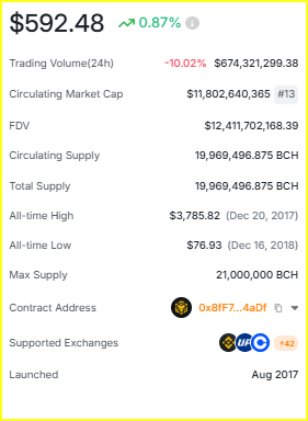 BCH wird derzeit um 592,0 $ gehandelt, was signifikant ist, da der Preis jetzt über allen drei wichtigen gleitenden Durchschnitten positioniert ist: