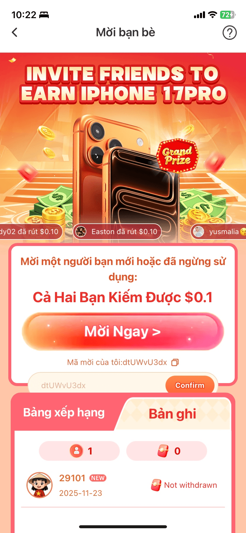Hifami, bitte geben Sie diesen Einladungs-Code in die App ein