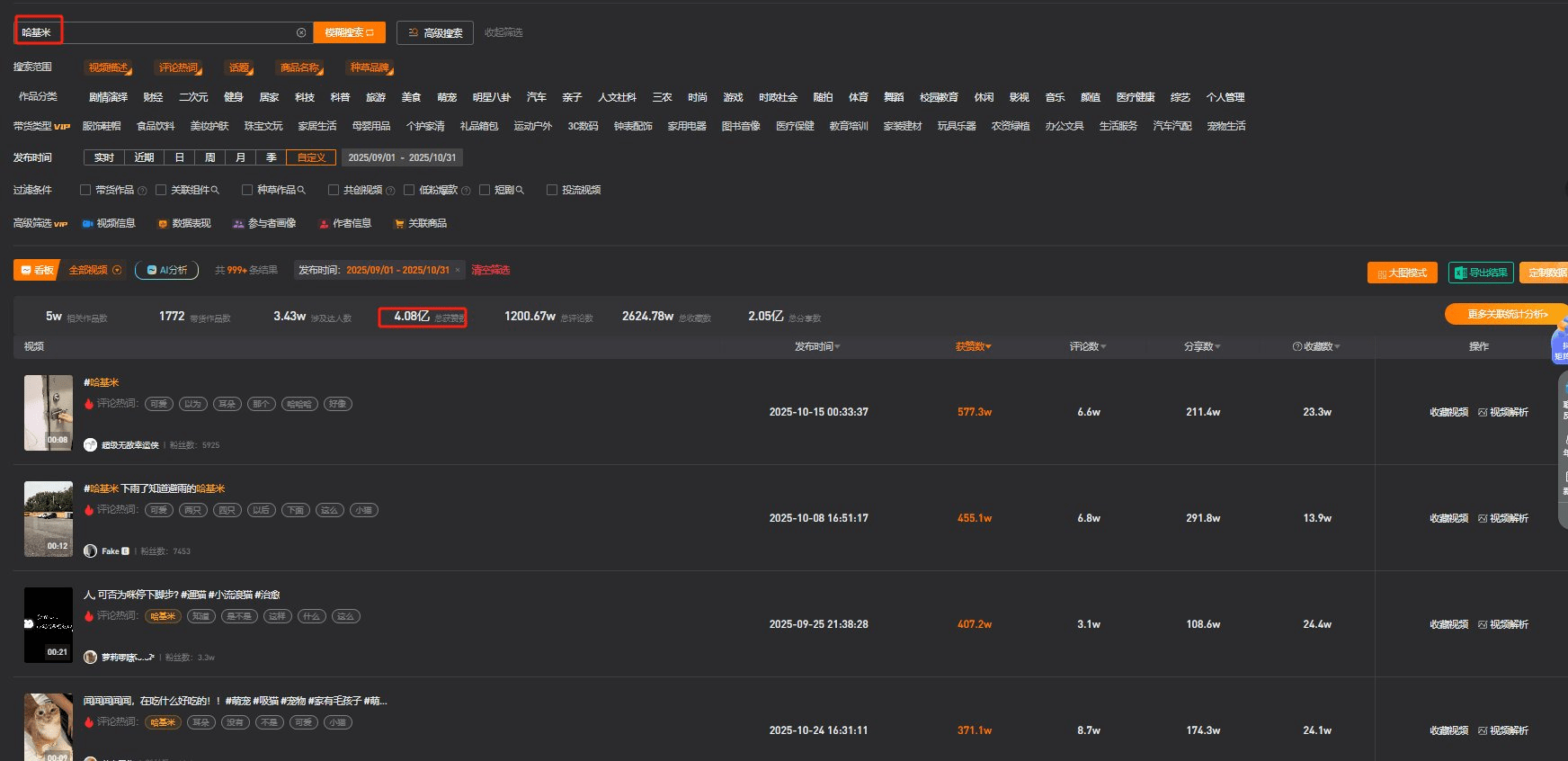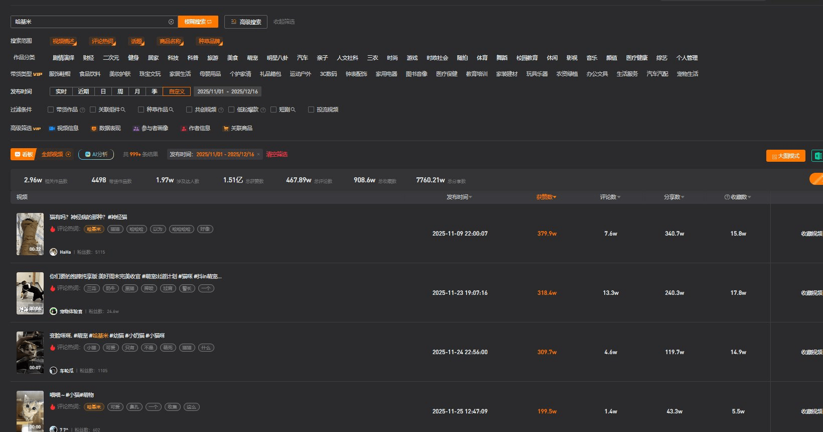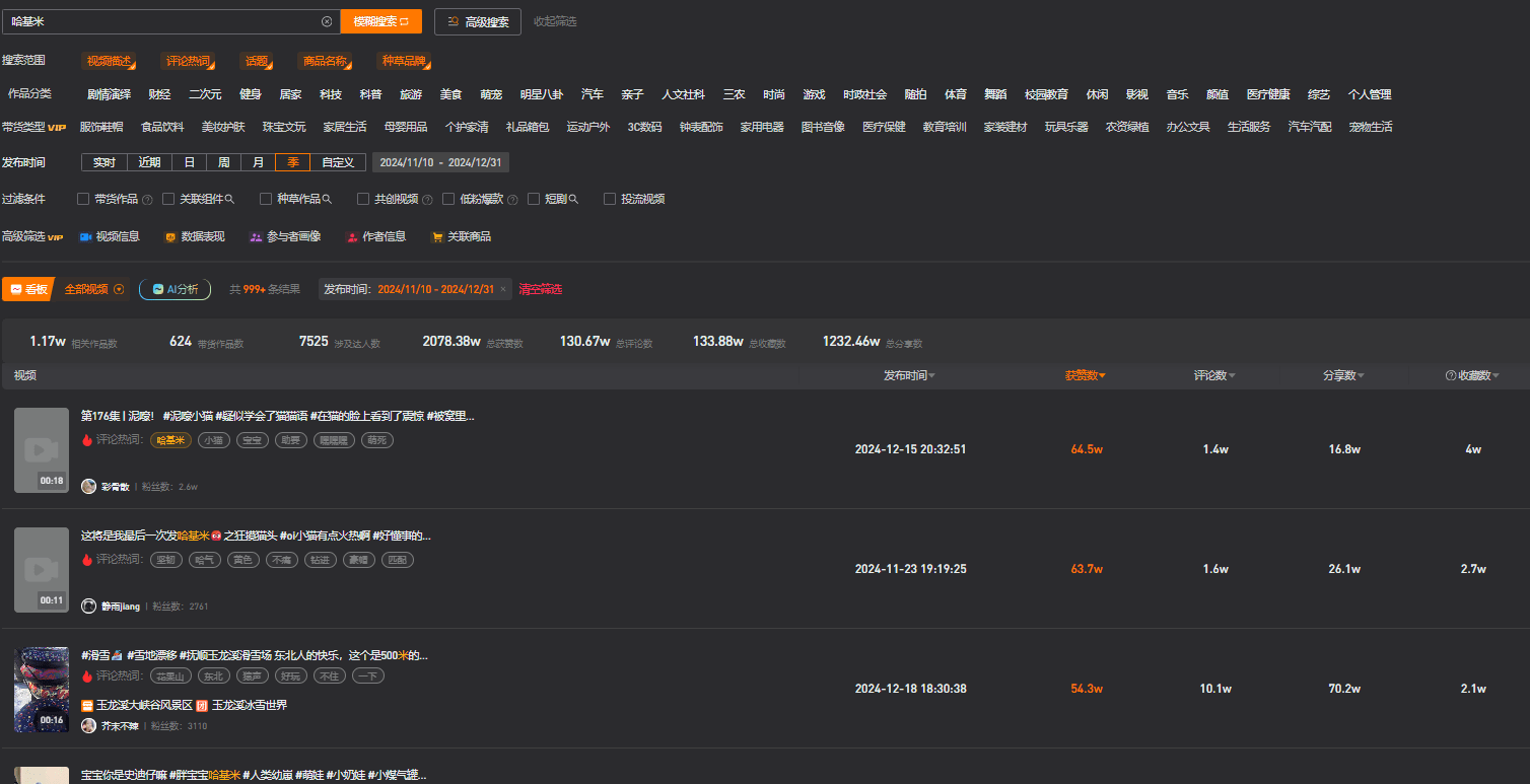 哈基米之歌数据远比短视频更高,但无法统计,详见第9期。