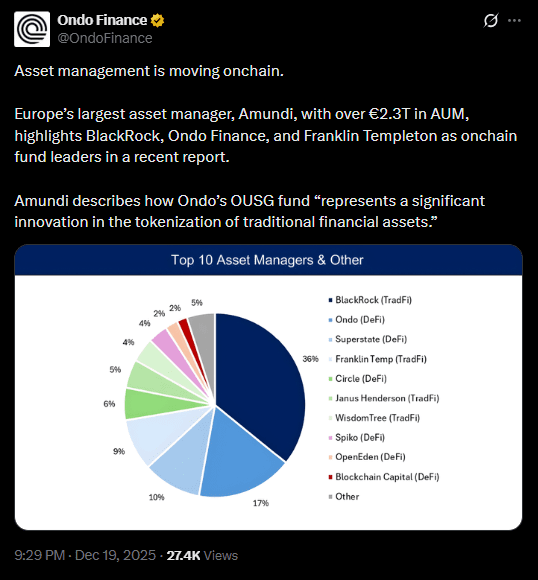 BlackRock hat sich aktiv an ONDO und RWAs über BUIDL beteiligt [Quelle: X].