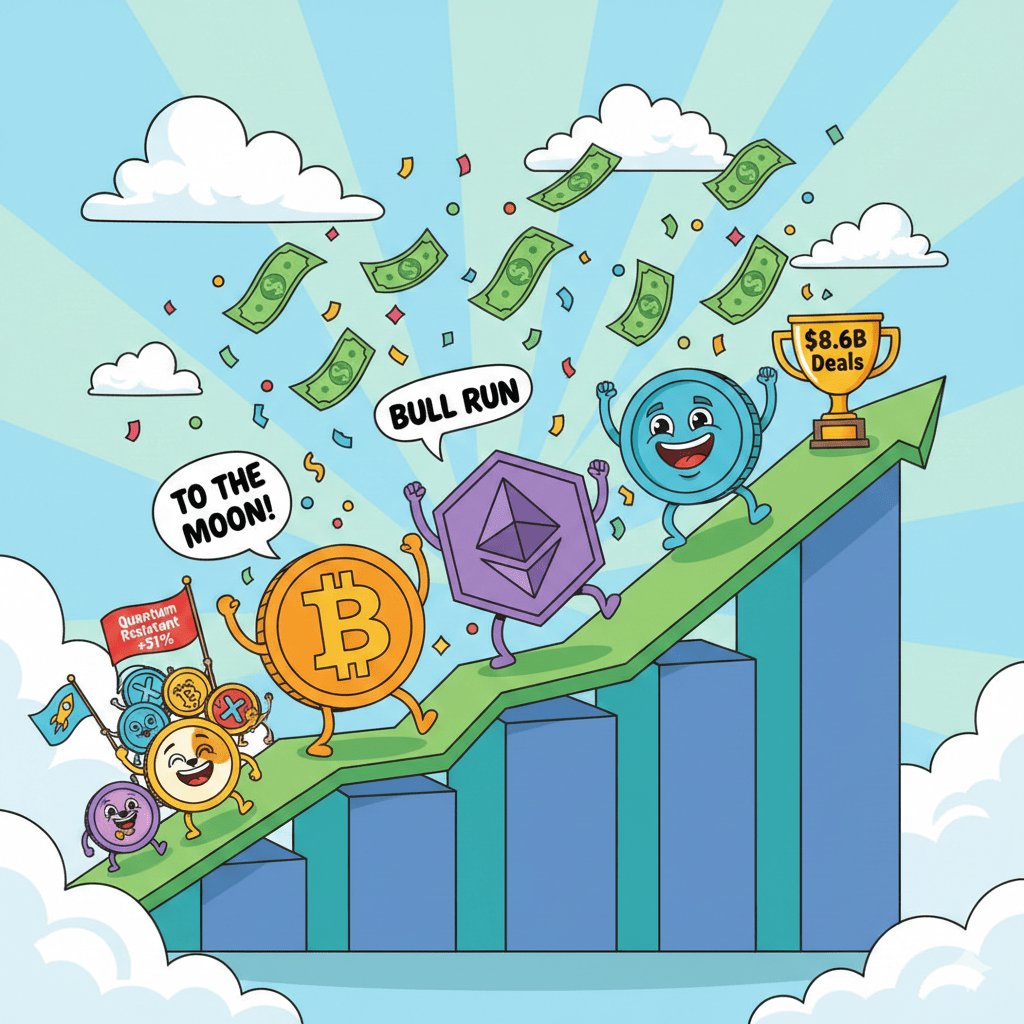 Die Krypto-Deal-AktivitĂ€t erreichte 8,6 Milliarden Dollar und markiert einen neuen Höchststand fĂŒr 2025. Das institutionelle und Handelsinteresse bleibt stark â ein bullisches Signal fĂŒr die langfristige Akzeptanz.