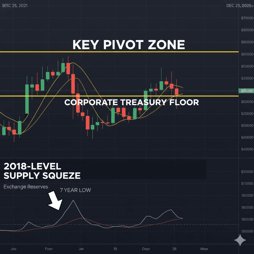 Strategischer Boden: Die Zone von 85.000 $ fungiert als fester Widerstand, der stark von Unternehmensschatzämtern und ETF-gebundenen Spotkäufern verteidigt wird.