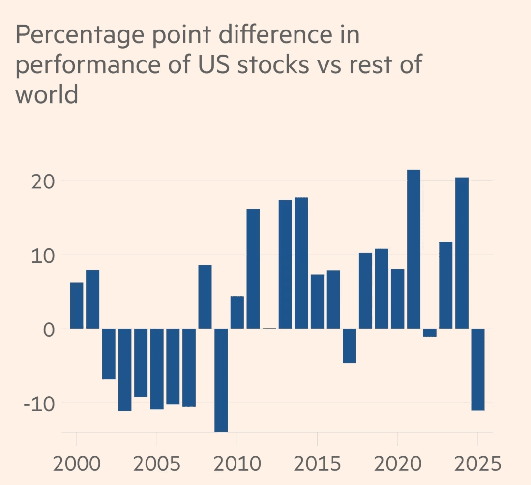 Doch die nachhaltigen Auswirkungen des Handelskriegs des Präsidenten – sowie Sorgen über die extrem hohen Bewertungen der US-Technologieunternehmen – haben viele Anleger dazu veranlasst, die dominierende Stellung der US-Aktien in globalen Portfolios in Frage zu stellen.