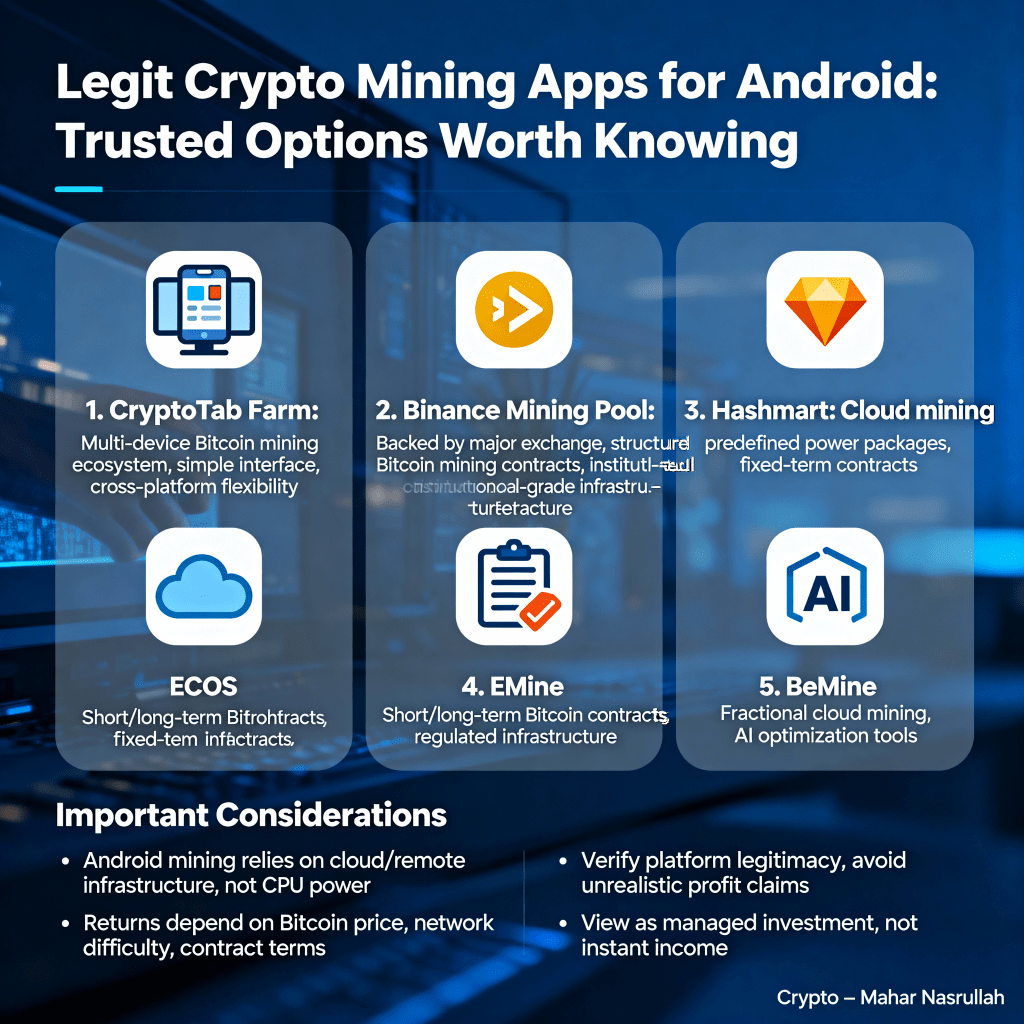 Da das Interesse am Krypto-Mining weiter wächst, suchen viele Android-Nutzer nach legitimen und zuverlässigen Mining-Lösungen. Während echtes mobiles Mining technische Einschränkungen hat, bieten mehrere Plattformen cloud-basierte oder ökosystemgestützte Mining-Optionen, die über Android-Geräte zugänglich sind.