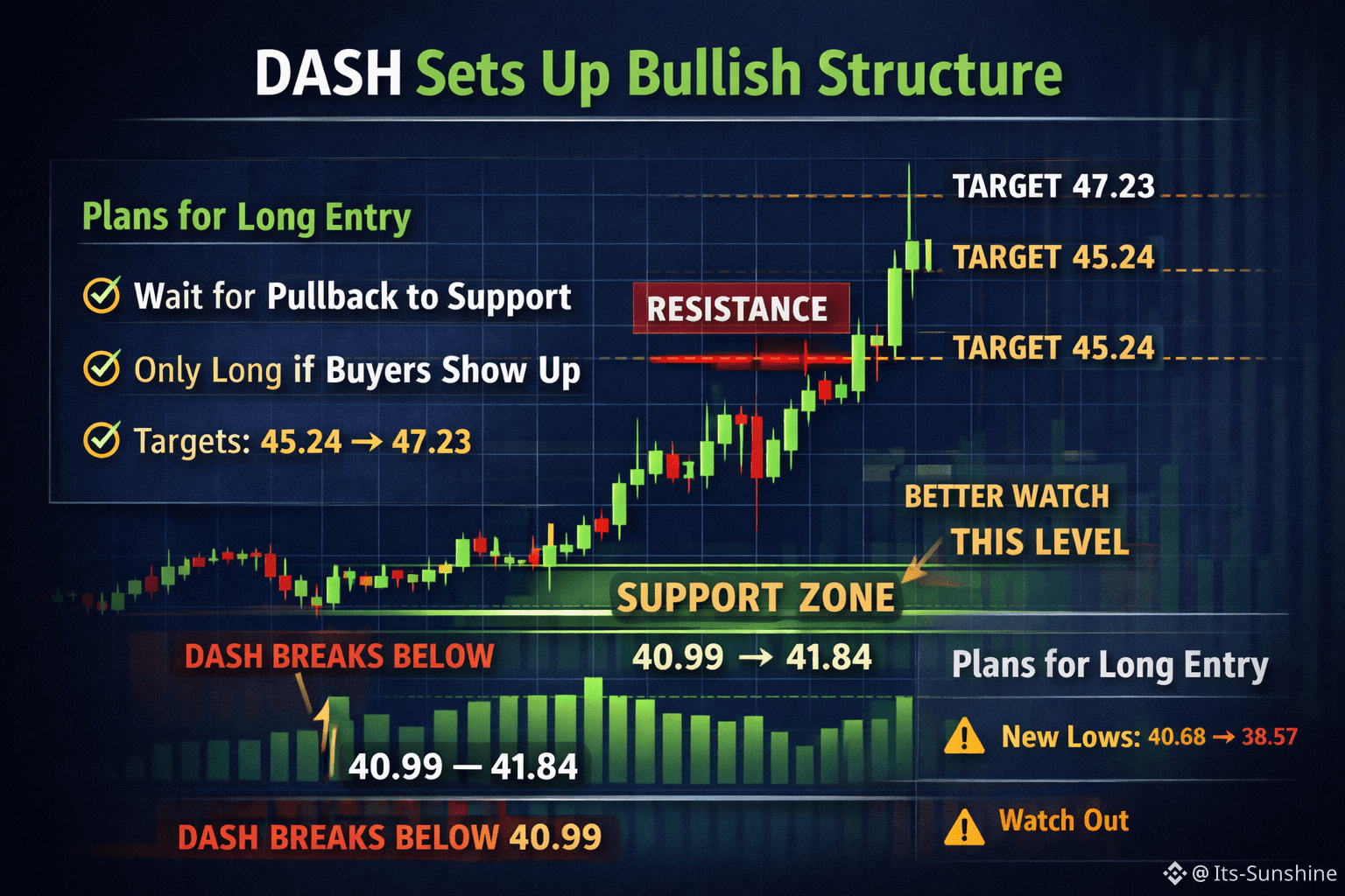 If DASH maintains support above roughly 41.8 and overcomes resistance near the mid-$40s, traders could see follow-through toward higher levels — including ~$45 and beyond into the upper $40s. Continued strength could build a case for upside toward $50+ in alignment with broader price compression breakouts seen in similar altcoin moves.