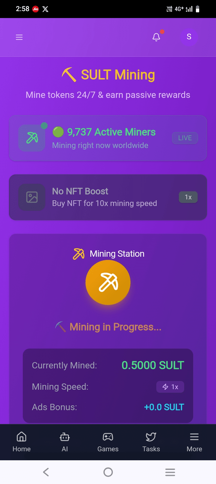 Mines Gaming: Ein interaktives "Play-to-Earn"-System, bei dem Benutzer $SULT-Token verdienen und NFT-Boosts für bis zu 20-fache Belohnungen nutzen können.