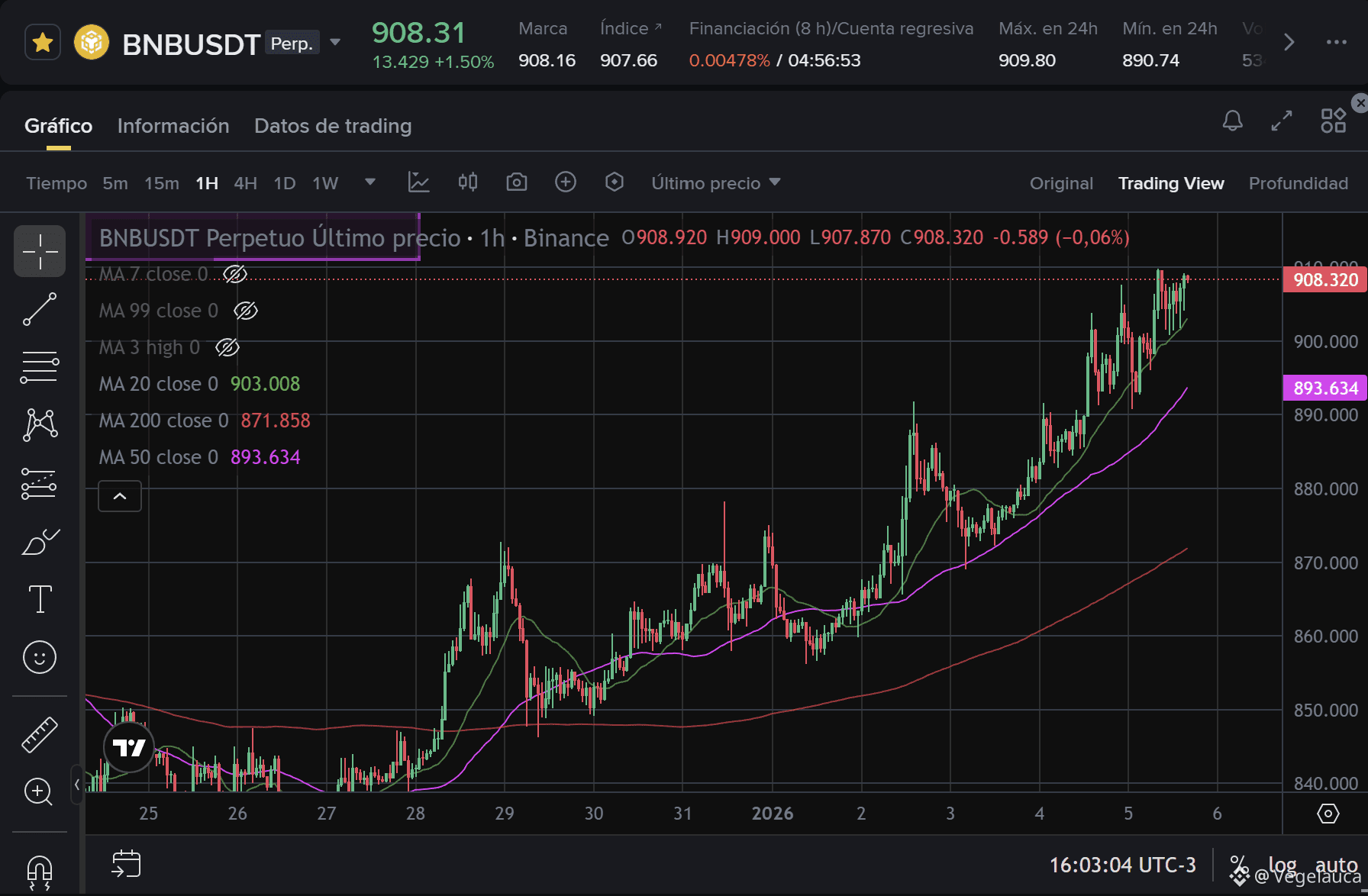 Es muy común que, tras romper una resistencia fuerte como la MA 200 ($890), el precio vuelva a bajar para tocarla y confirmar que ahora es soporte. Si perdemos los $900, no entres en pánico: vigila la reacción en la zona de $888 - $890. Si aguanta ahí, es una oportunidad de entrada técnica de libro.