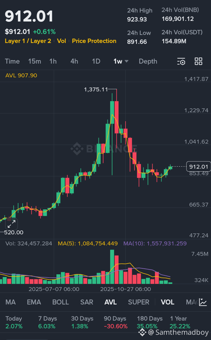 BNB showed relatively stable performance over the past week as the broader crypto market traded within a narrow range. While some assets experienced sharp volatility, BNB maintained a more balanced price movement, reflecting steady participation from traders.