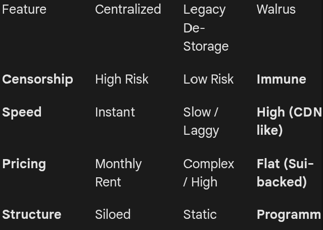 Walrus führt eine Paradigmenverschiebung im dezentralen Speichern ein, indem er ein entitätsbasiertes Speichermodell nutzt, anstatt nur ein einfaches dateibasiertes Modell. Durch die Nutzung einer einzigartigen Erasure-Coding-Mechanismus gewährleistet es hohe Verfügbarkeit und Geschwindigkeit, die traditionellen "Engpässe" dezentraler Netzwerke wie IPFS oder Arweave.