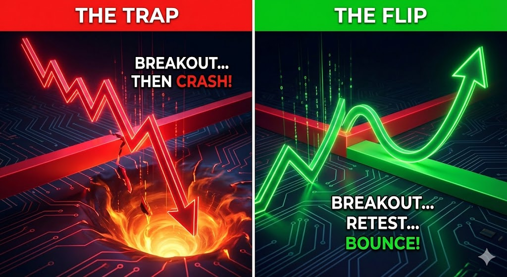 Hast du jemals einen Widerstandsbruch gekauft, weil du eine riesige grüne Kerze gesehen hast, nur um zu sehen, wie der Preis sich sofort gegen dich wendet? 📉