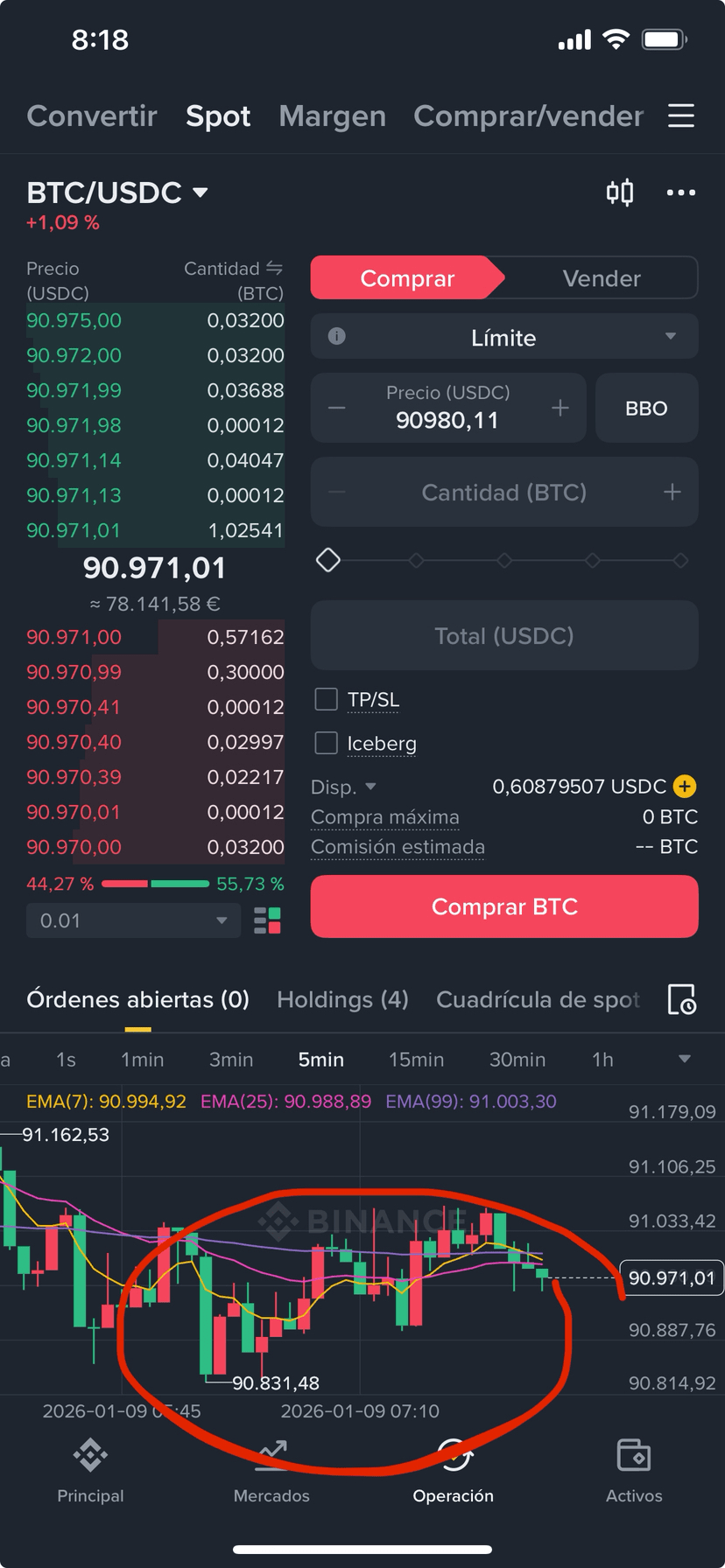 Bullish trend, wir sehen, dass sich innerhalb eines Zeitraums von 15-Minuten- und 5-Minuten-Kerzen die untere Grenze mehrmals durchbricht. Wird es noch weiter fallen? Ich schaue mir die Historie an, welche Tiefpunkte bisher erreicht wurden #EMA. #BTC #USDC $BTC