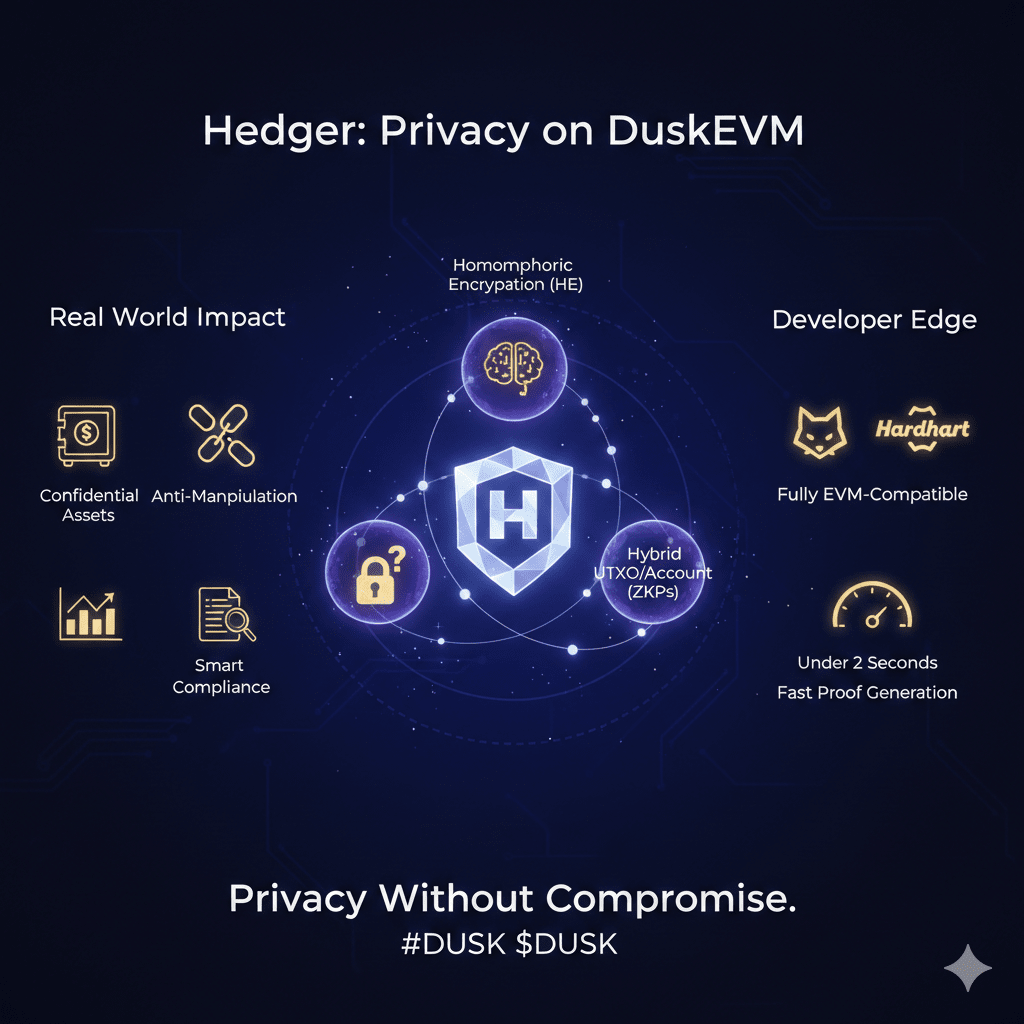 Ich habe untersucht, wie sich das Dusk Network entwickelt, und ihre neue Datenschutz-Engine, Hedger, ist ehrlich gesagt ein riesiger Schritt nach vorne. Sie ist speziell für DuskEVM (deren Ethereum-kompatible Schicht) konzipiert, um eines der größten Probleme in der Krypto-Welt zu lösen: wie man privat bleibt und gleichzeitig konform ist.