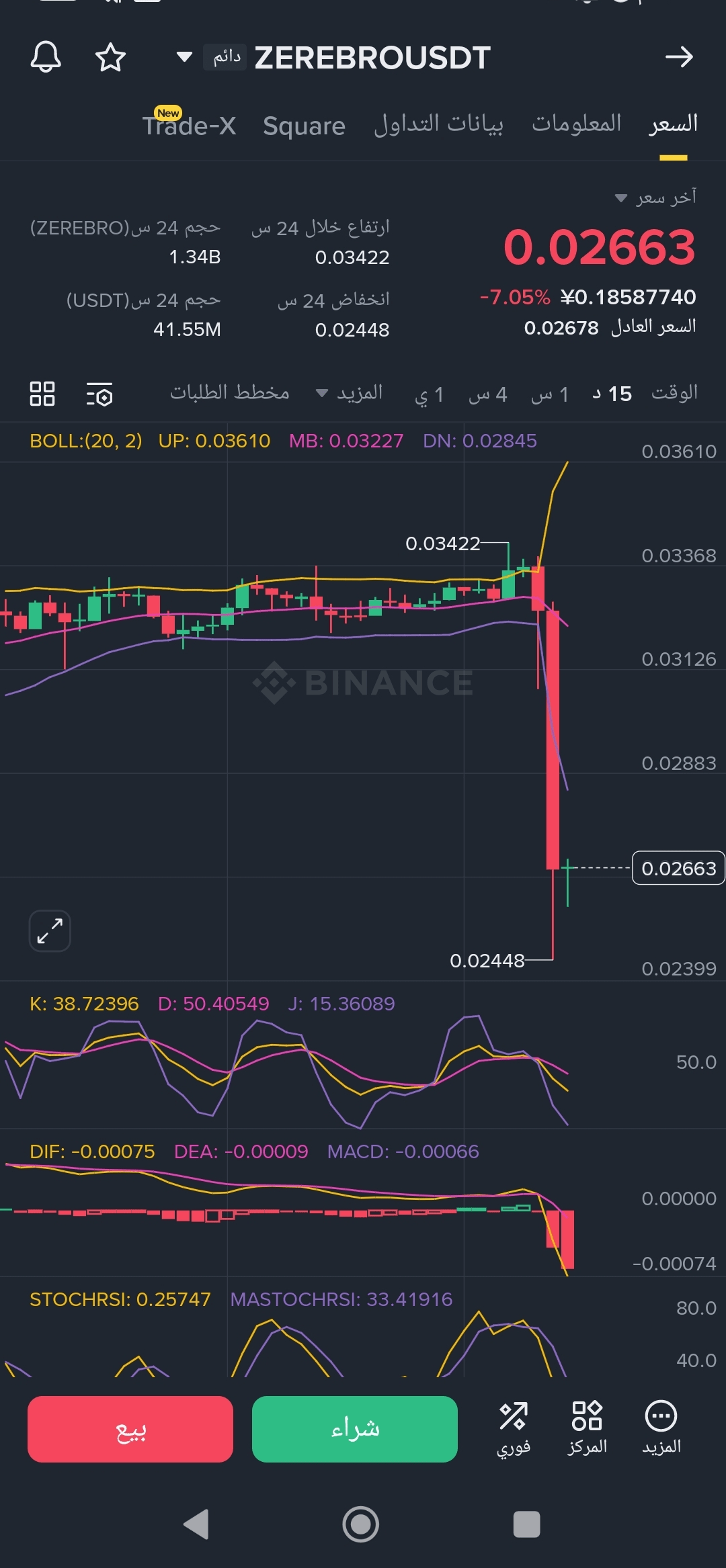 Der Stochastic-Indikator in Coin 4 zeigte, wie der Indikator den Höchststand berührte und dann stark bis zum technischen Nullpunkt fiel. Diese Null ist nicht nur eine Zahl, sondern bedeutet, dass der Kaufdruck vollständig beendet ist, und jeder kleine Verkauf wird zu einem "freien Fall" führen, und genau das geschah kurz darauf in ZEREBRO.