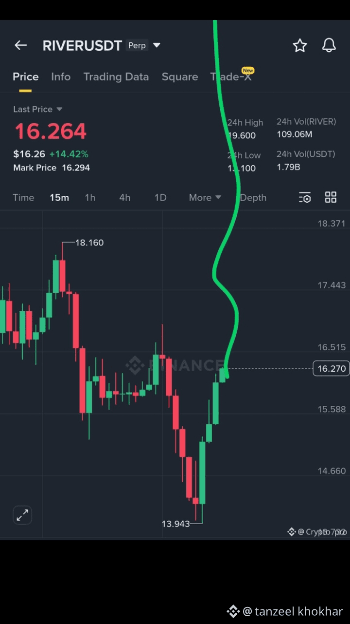River (RIVER) is trading around ~$16–$18 USDT recently, showing strong volatility and near-term upside momentum. �