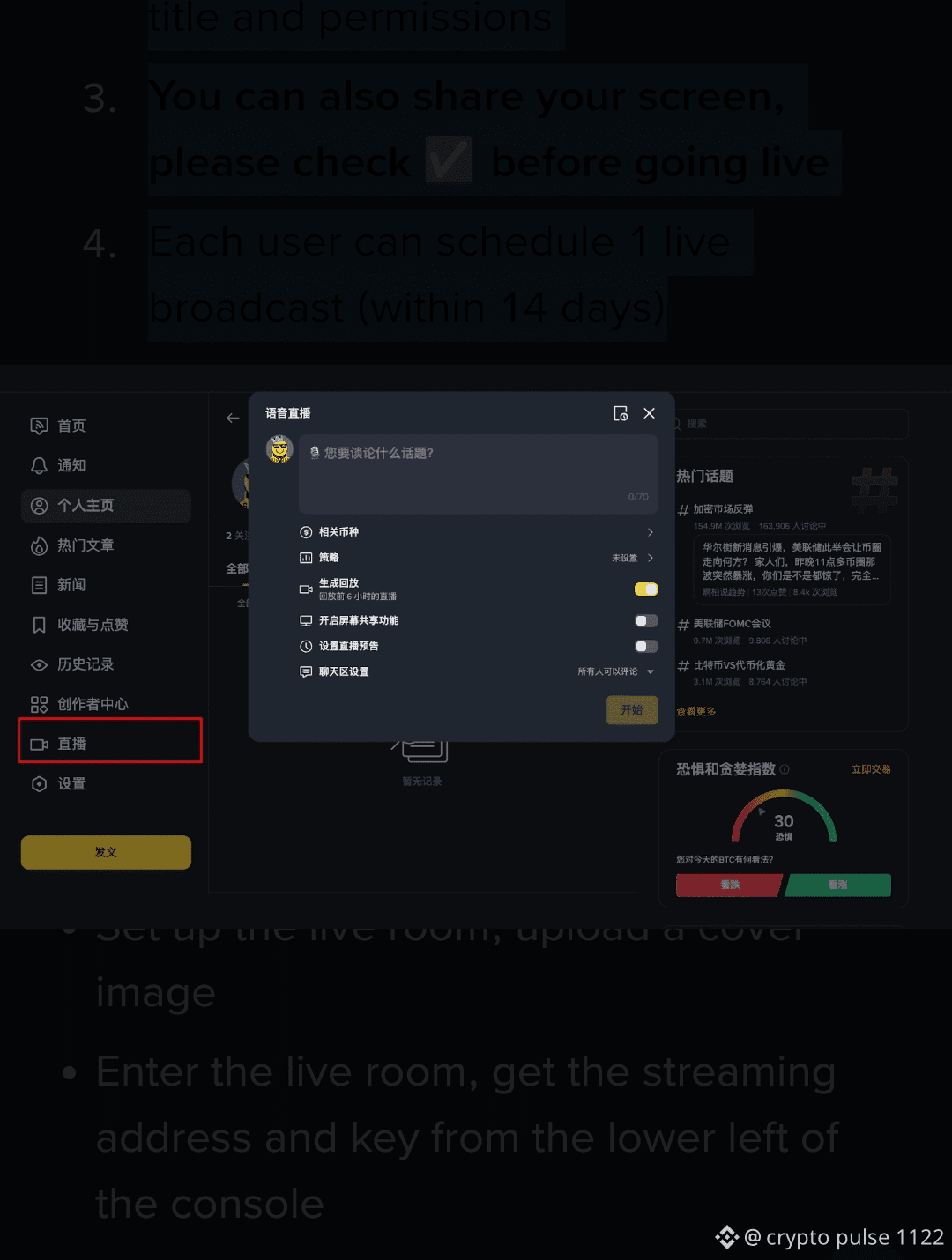 Binance Square currently supports three forms of live broadcasting:
