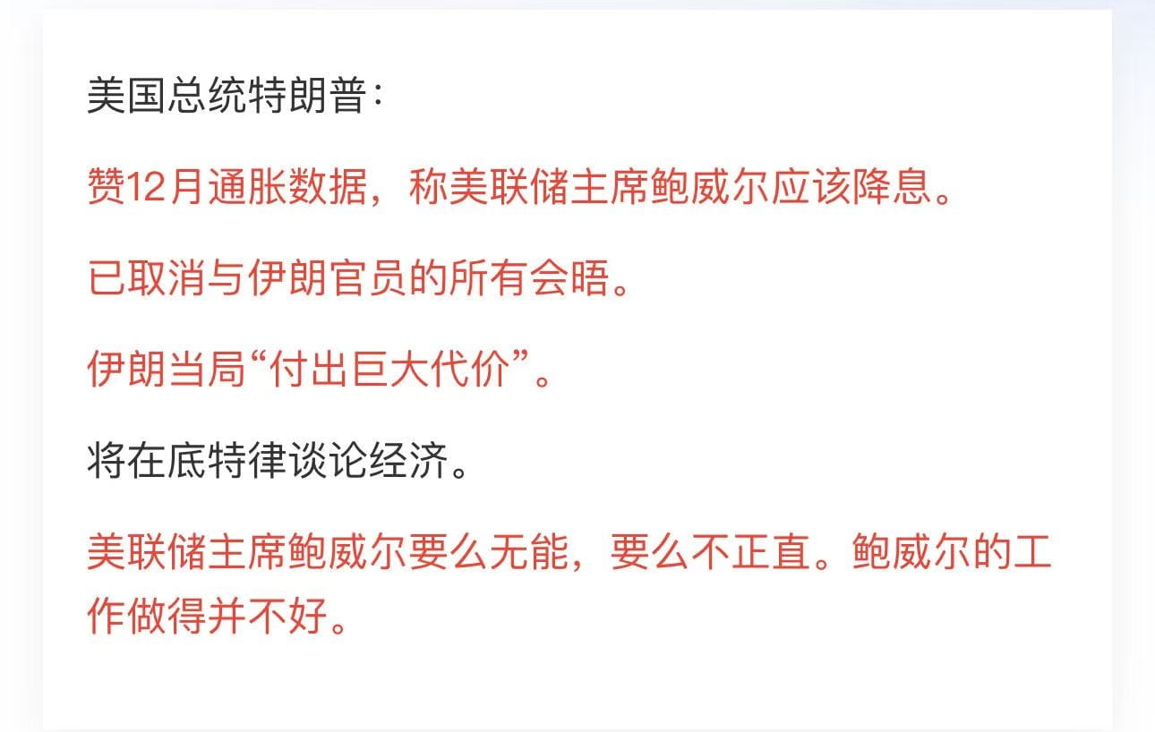 Einerseits lobte er die Kontrolle der Inflation, andererseits feuerte er Powell an, entweder unfähig oder unehrlich zu sein, und fügte hinzu, es sei jetzt Zeit für eine Zinssenkung!