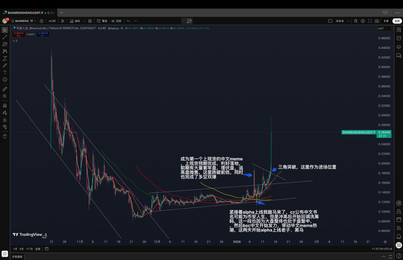 Binance Life wird durch positive Nachrichten unterstützt, ist der erste chinesische Meme-Coin, der auf den Spot-Markt kommt, und erhält zusätzlich die Zustimmung von CZ. Außerdem hat eine bekannte Investoreninfluencerin bereits Coins gekauft und gehalten, was praktisch eine offizielle Unterstützung durch Binance darstellt. CZs neues Buch wird voraussichtlich in 4 bis 6 Wochen erscheinen. Damit ergibt sich ein Spekulationszyklus von über einem Monat. Hier bietet Binance Life eine ideale Einstiegsposition, um Kapital aus BSC zu ziehen, die Liquidität der Börse zu steigern, das Handelsvolumen zu erhöhen und gleichzeitig die Haltung von BNB zu fördern.