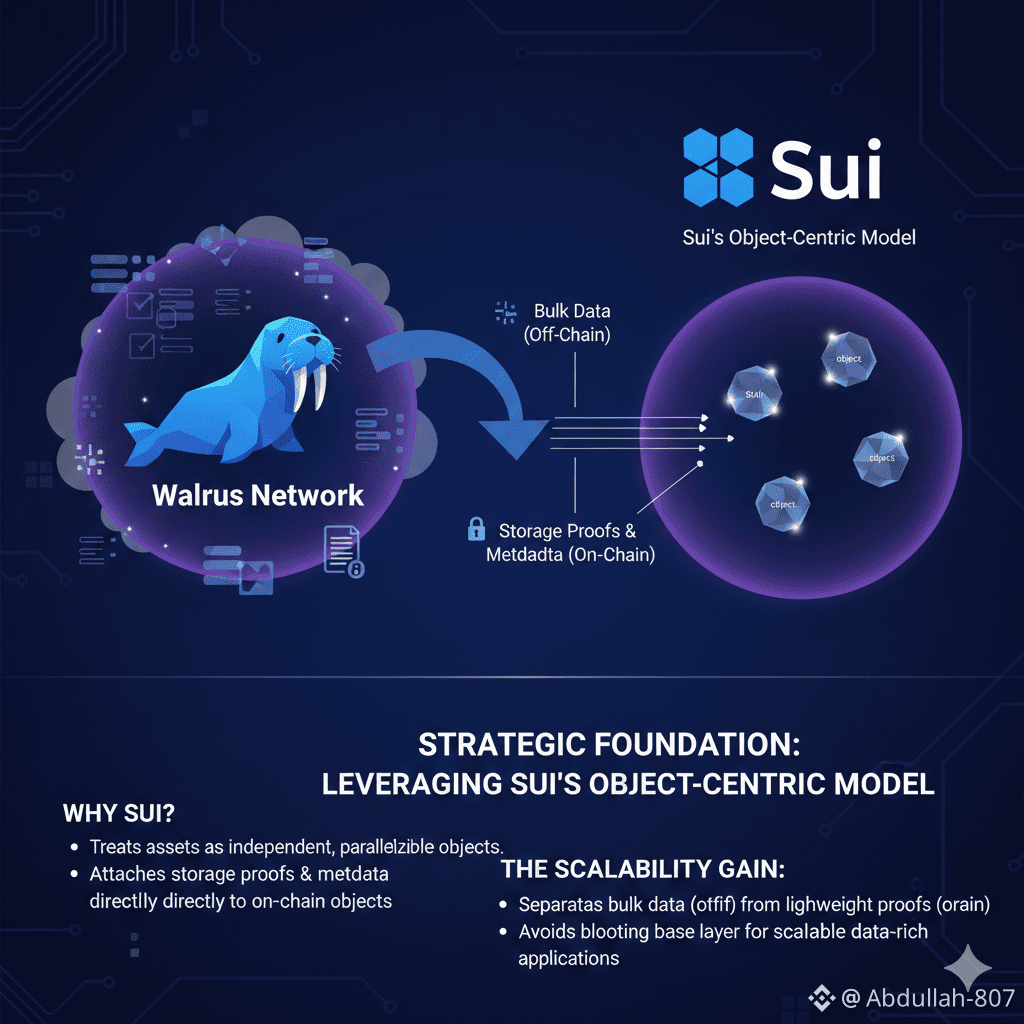 Walrus isn't built in a vacuum; its integration with the Sui blockchain is a core architectural advantage.
