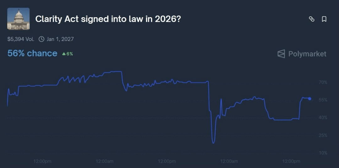Aktuelle Marktschätzungen geben etwa eine 56-prozentige Chance, dass der Clarity Act in diesem Jahr Gesetz wird.