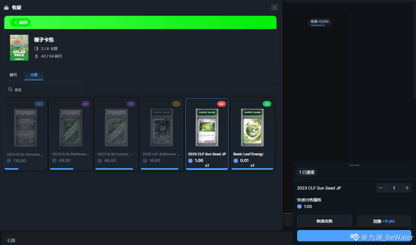 对于已经抽出的卡牌/碎片,可以选择出售/兑换积分/卡牌邮寄。