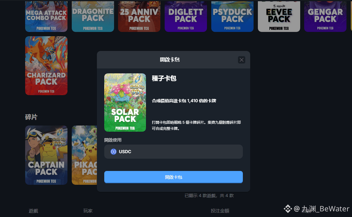 目前整个开卡包的过程都不需要消耗Gas费,只需要支付每个卡包的费用。目前开包仅支持USDC,未来会提供更多的货币兑换方案。所以我们需要先充值USDC作为我们开卡包的现金资产