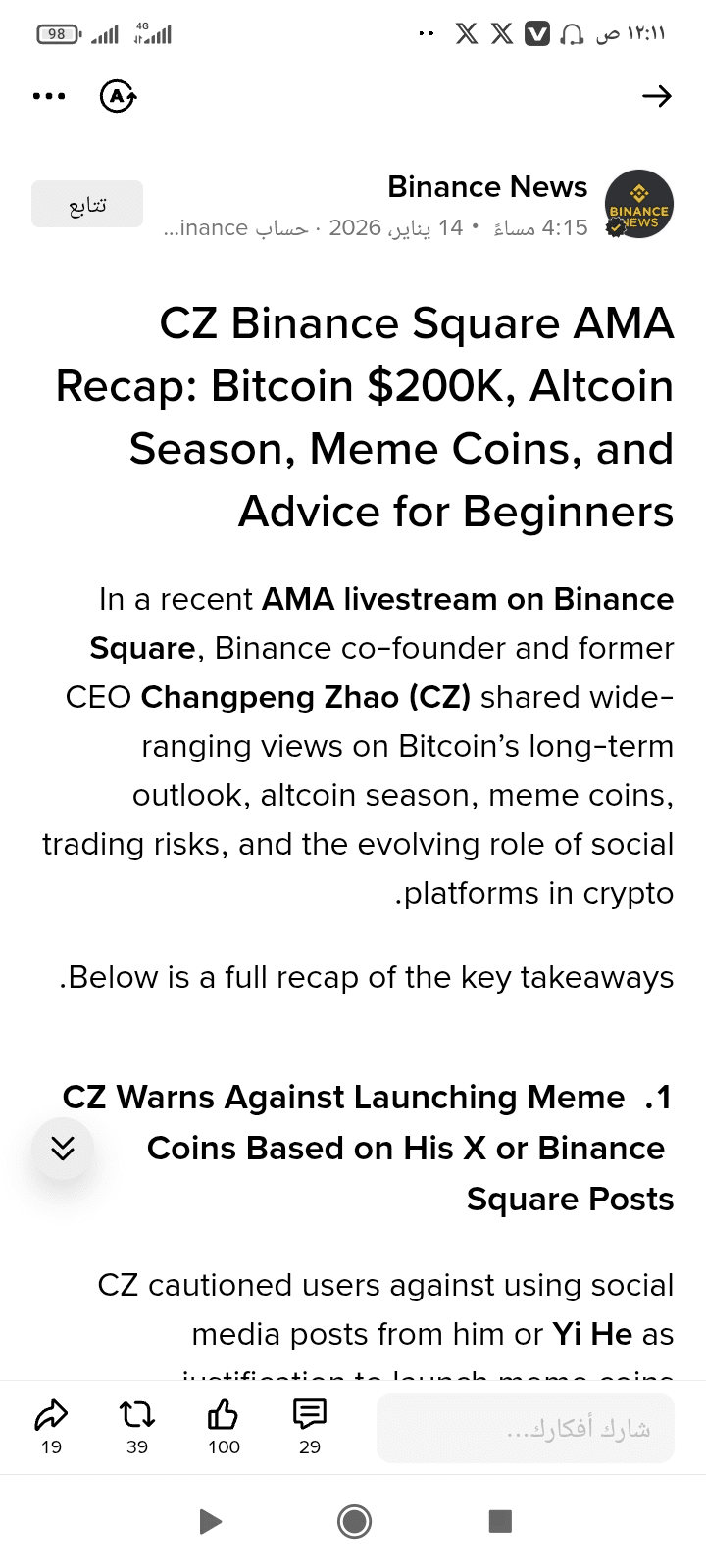 In einem kürzlich auf der Plattform "Binance Square" durchgeführten Live-AMA (Ask Me Anything) teilte Changpeng Zhao (CZ), Mitbegründer und ehemaliger CEO von Binance, umfassende Einsichten zu seiner langfristigen Sicht auf Bitcoin, der Altcoin-Saison, Handelsrisiken und der Rolle sozialer Plattformen.