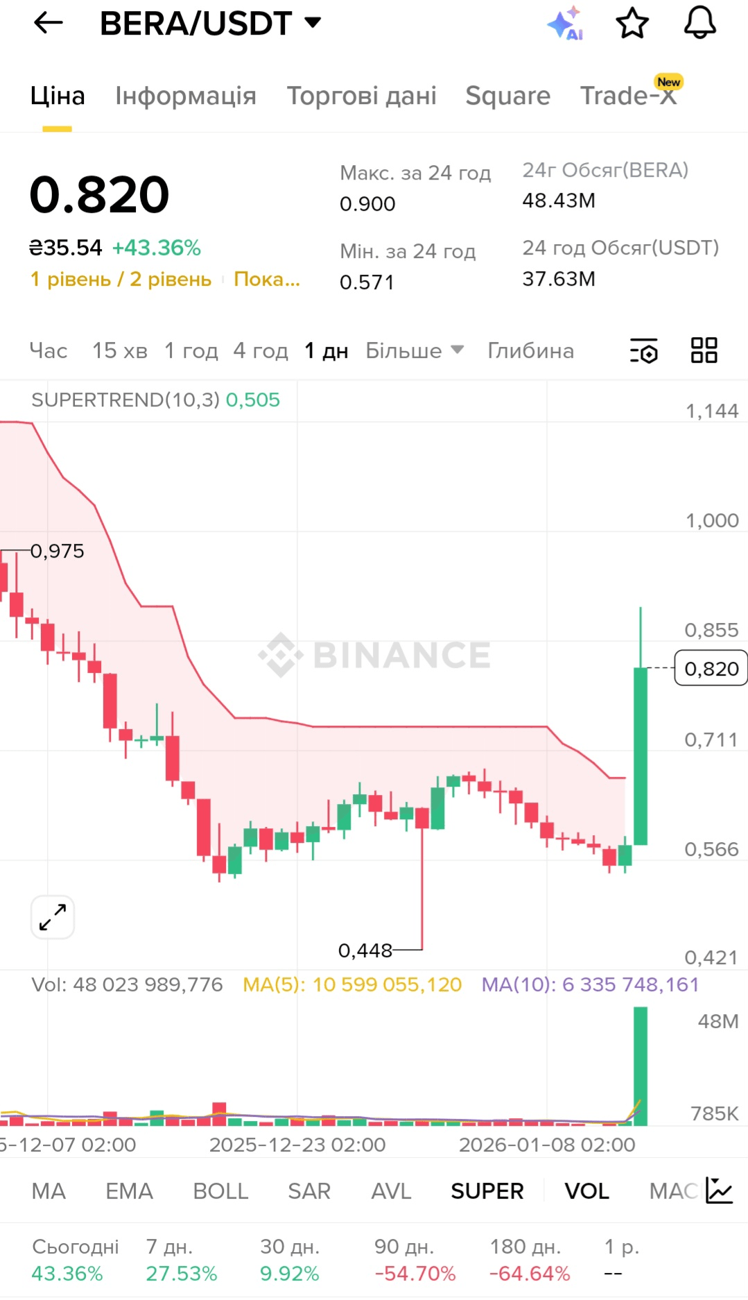 Nach der Veröffentlichung des Berichts stieg der Token $BERA um +43,36% und liegt bei etwa $0,82, wodurch das Handelsvolumen auf $415,54 Millionen erhöht wurde, bei einer Marktkapitalisierung von Berachain von $113,59 Millionen.