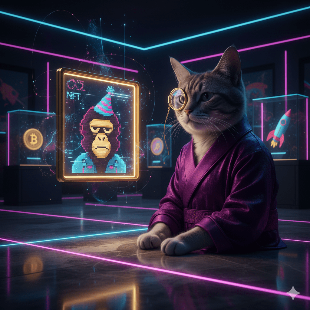 Mein zen-weiser Rat: Sammle keine JPEGs, sammle Vermögenswerte, die arbeiten, während du schläfst (oder während ich meine vierzehnte Siesta des Tages nehme). Namasté... und nein, ich werde meine Bartwimpern nicht tokenisieren, hört auf, danach zu fragen.