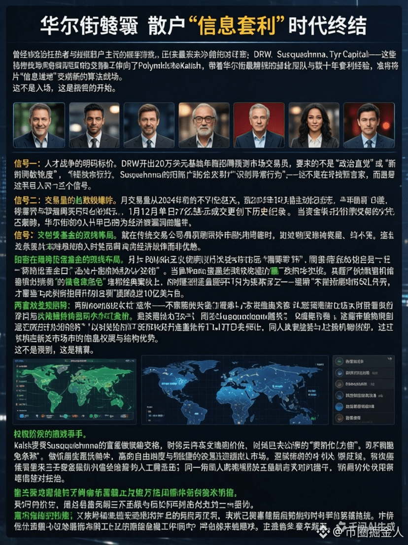 信号一:人才战争的明码标价。 DRW开出20万美元基础年薪招聘预测市场交易员,要求的不是"政治直觉"或"新闻敏锐度",而是"实时监控与主动交易"的执行力。Susquehanna的招聘启事更具启示性——"检测错误公允价值""识别异常行为"——这不是在寻找预言家,而是在招募漏洞猎手。