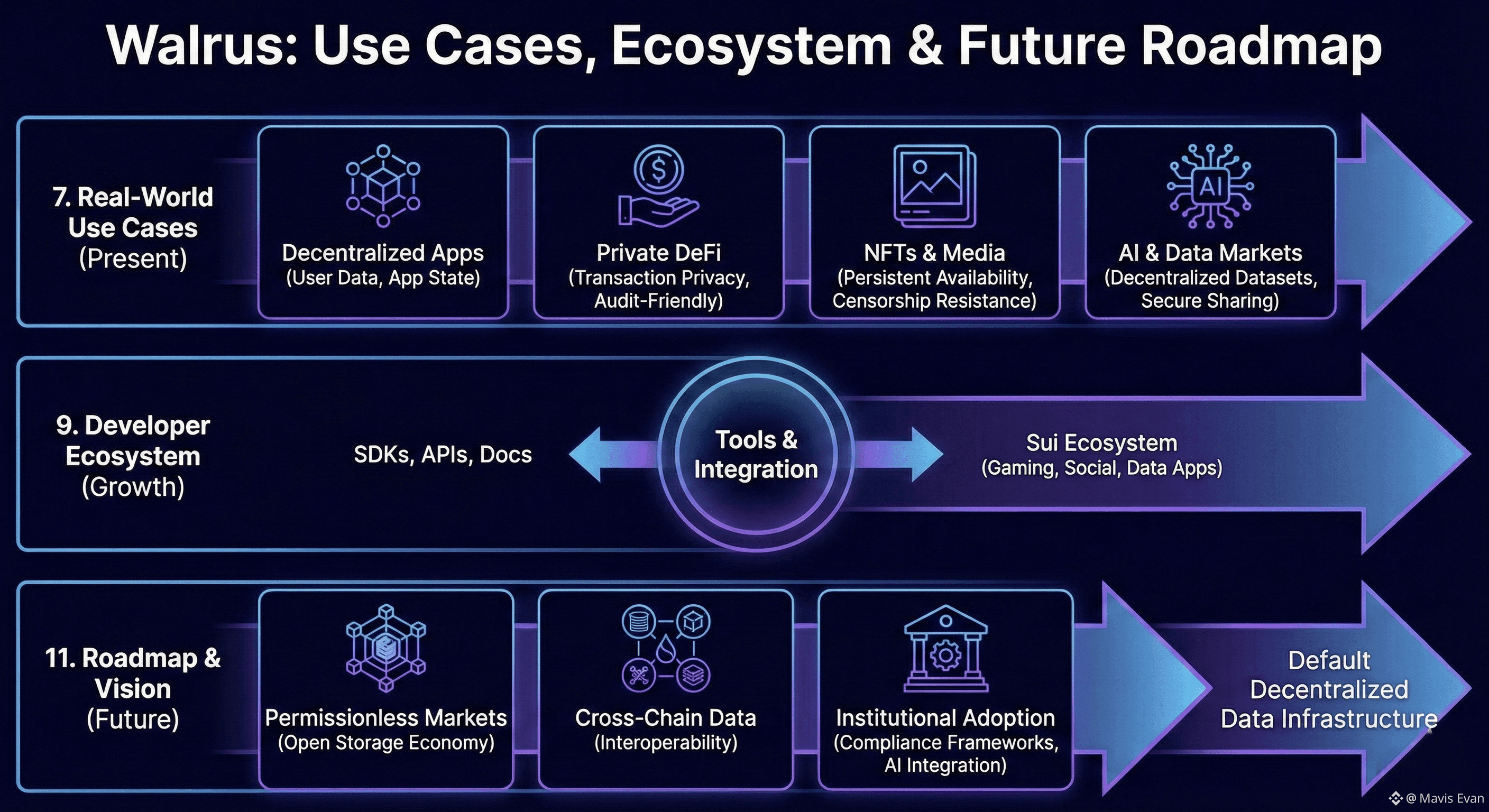 Walrus is shaping up to be a core infrastructure layer within the Sui ecosystem, supporting DeFi, gaming, NFTs, social platforms, and data-heavy applications.