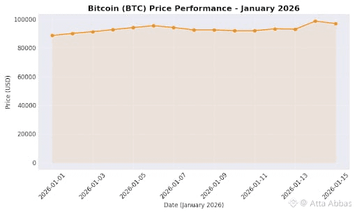 The chart below illustrates the price trajectory of Bitcoin through the first half of January 2026, highlighting the breakout that occurred mid-month.