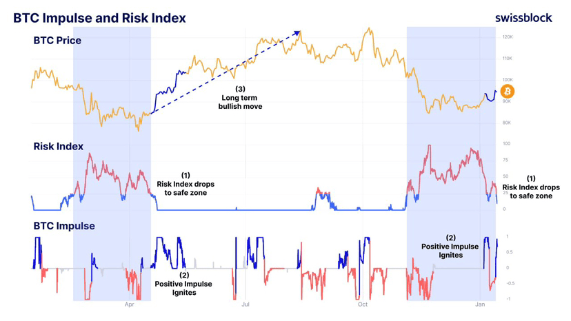 Laut Bitcoin Vector befindet sich der Risikoindex in einer sicheren Zone, und der Impuls beginnt zu wachsen. Der aktuelle Fraktal ähnelt fast vollständig der Struktur des Aufschwungsanfangs April 2025.