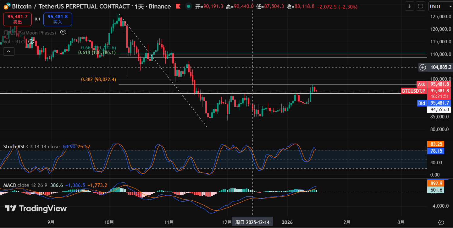 Aktueller Preis 96.000, obwohl er im Vergleich zum Höchststand von 126.000 im letzten Jahr stark gefallen ist, kaufen Institutionen weiterhin hektisch ein: Am ersten Tag des ETF im Jahr 2026 betrug der Nettozufluss 470 Millionen US-Dollar, was bedeutet, dass täglich eingekauft wird. Einfach gesagt: Privatanleger verkaufen, Institutionen kaufen, der Markt ist bereits von großen Geldern kontrolliert!