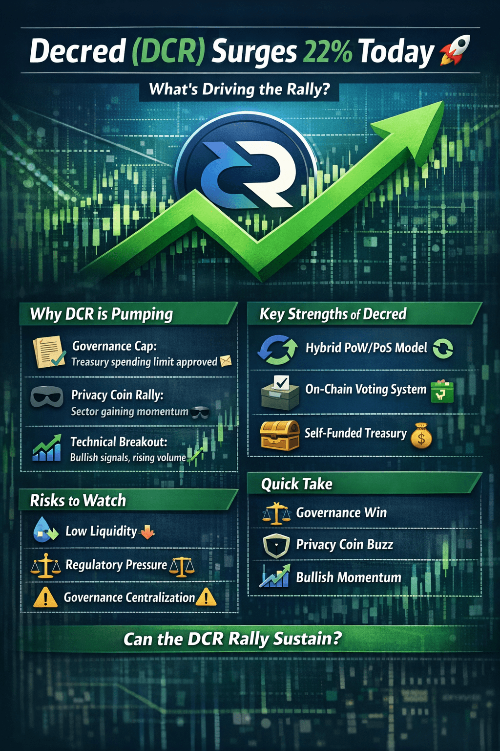 $DCR wird zusammen mit anderen datenschutzorientierten Krypto-Währungen (wie Dash, Monero) nach oben gezogen, während Händler in dieses Nischensegment rotieren. Diese breite Sektor-Stärke hebt DCR heute. �