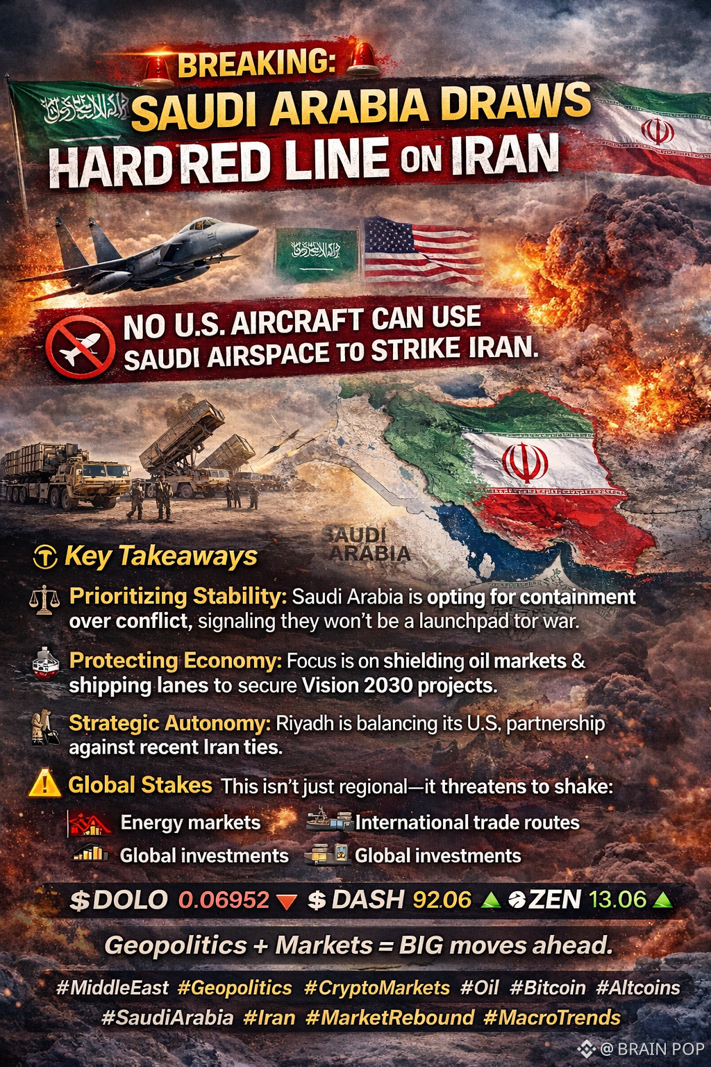 ✈️ U.S. military aircraft will NOT be allowed to use Saudi airspace or territory for strikes against Iran.