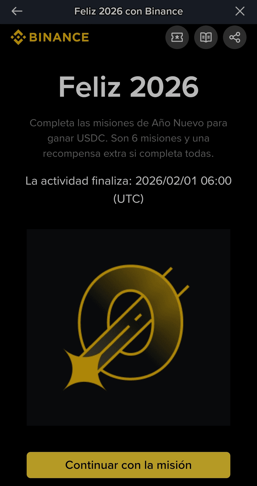 Schließe die Neujahrsmissionen ab, um USDC zu gewinnen. Es sind 6 Missionen und eine zusätzliche Belohnung, wenn du alle abschließt.