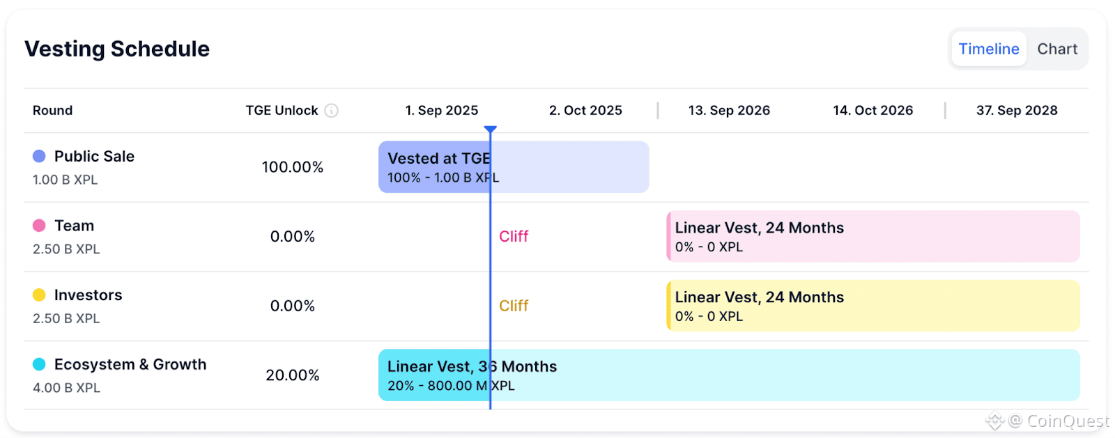 The XPL token vesting schedule is as follows:
