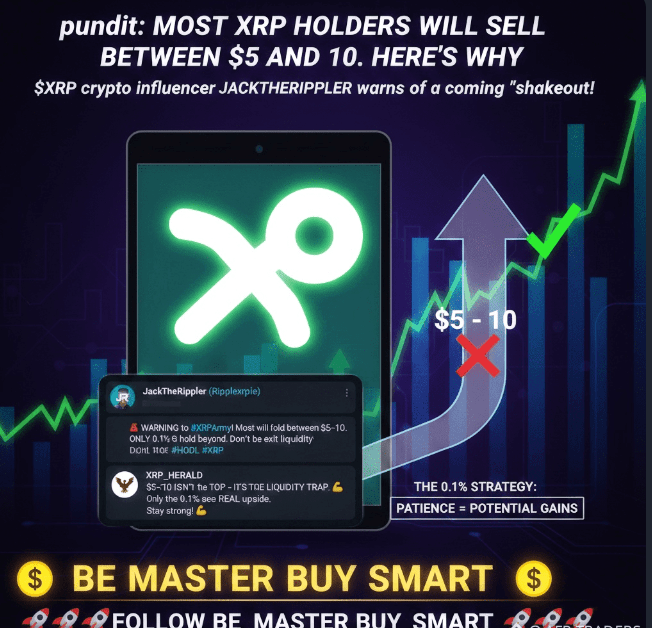 Krypto-Analyst JackTheRippler hat einen großen Alarm für die XRP-Community ausgegeben. Während viele darauf warten, dass XRP die 5 $ bis 10 $-Spanne erreicht, warnen Experten, dass diese Zone ein massiver Shakeout sein könnte, der darauf abzielt, Privatanleger von den "Elite 0,1 %" zu trennen.