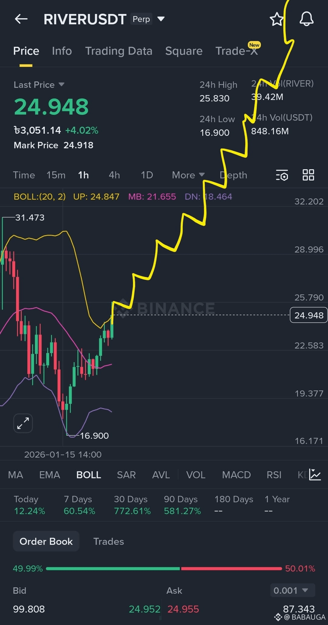 ✔ $RIVER wird aktiv auf Binance Futures mit einem unbefristeten Vertrag gehandelt, der seit Oktober 2025 verfügbar ist.