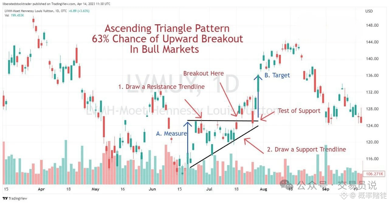 上升三角形形态(Ascending Triangle)是一种可靠的看涨延续形态,深受经验丰富交易者的青睐。