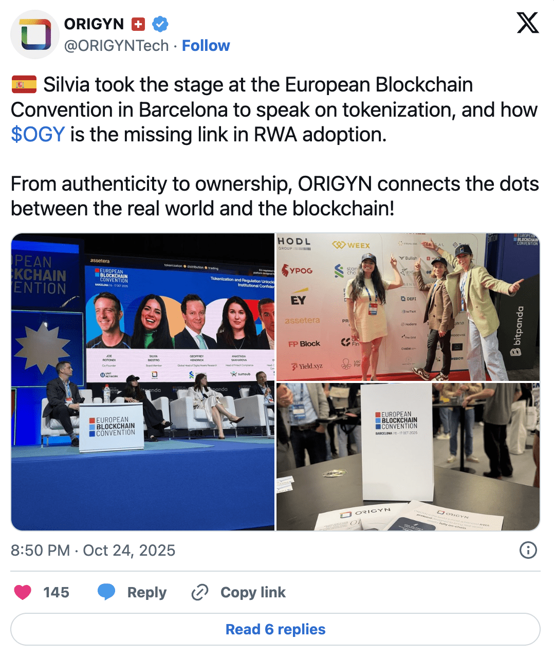 战略代币支持:ORIGYN 完成了一笔重要的 OGY 回购,以支持生态系统信心和长期协议稳定性,这表明基金会持续致力于可持续发展。